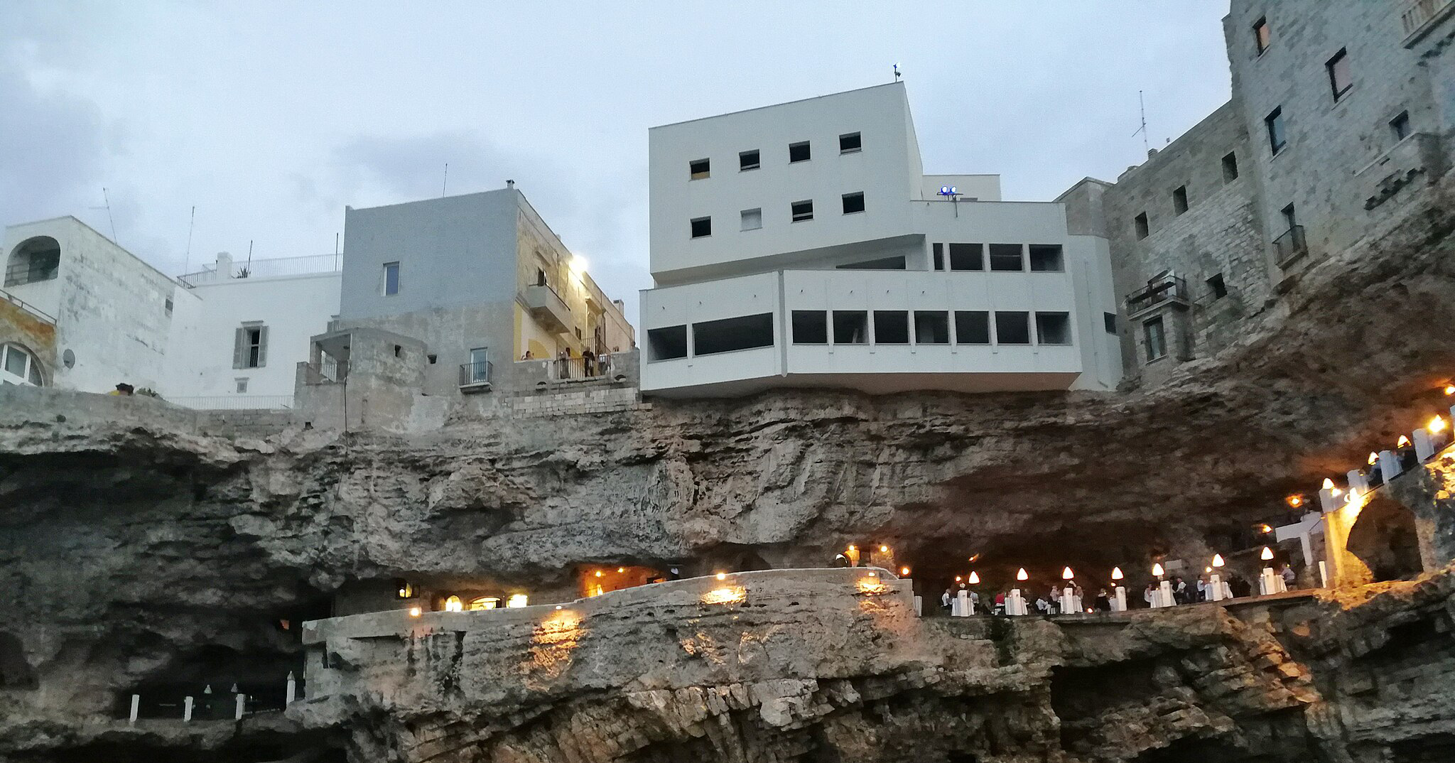 1. Nella Top Ten si trova l'Italia con la Grotta Palazzese di Polignano a Mare, in provincia di Bari, location dalle origini antichissime; uno scenario unico al mondo. Natura limpida dai riflessi azzurri, e dal verde delle insenature della grotta.