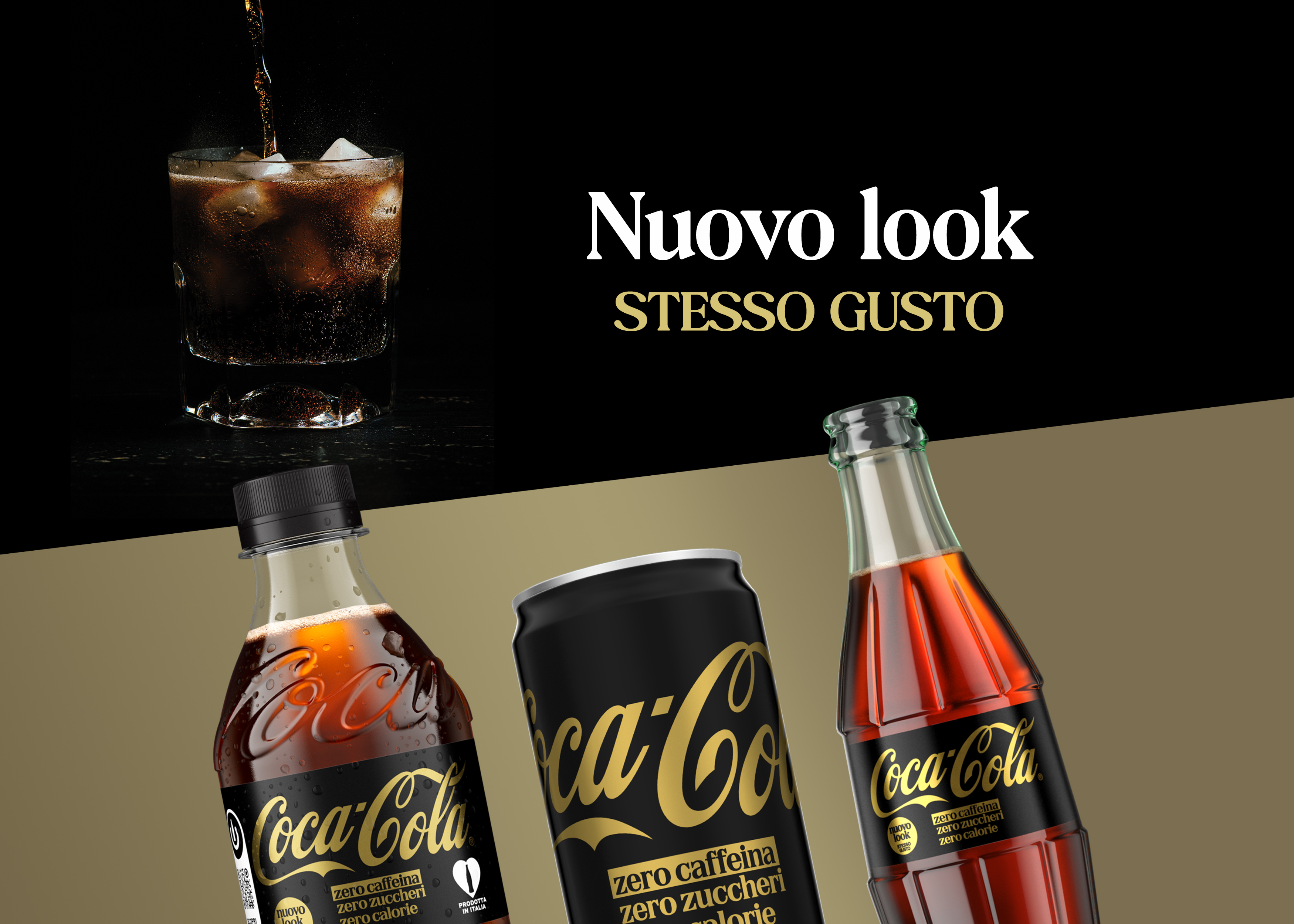 Coca‑Cola rinnova la presenza in Italia di Coca‑Cola Zero Zuccheri Zero Caffeina. Il prodotto, presente sul mercato dal 2022, si rifà il look con un packaging d'impatto: una lattina total black con dettagli dorati, studiata per diventare la protagonista delle occasioni di socialità serale.
