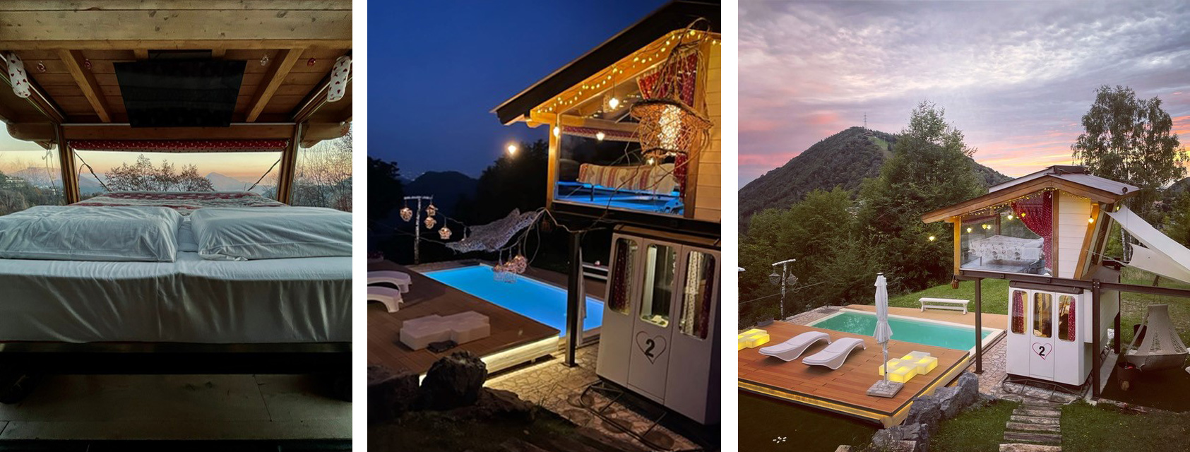 La cabina della funivia diventa una romantica camera da letto: l’albergo inaspettato con vista sulle Prealpi