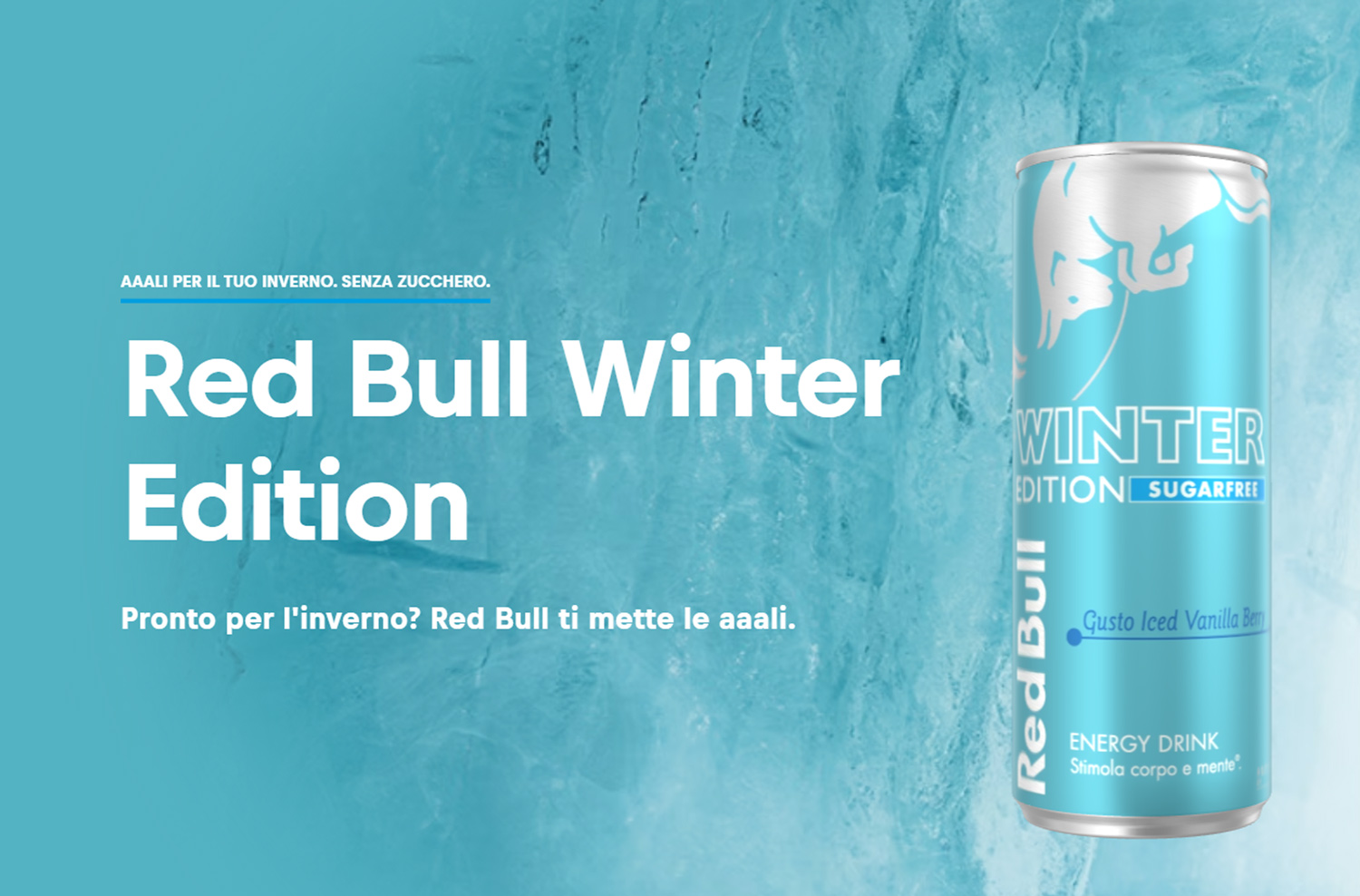 La bevanda è presentata nell'iconica lattina Red Bull, decorata con colori invernali e disegni che evocano la stagione, invitando a un'esperienza energizzante e indulgente , perfetta per accompagnare le tue avventure invernali.
